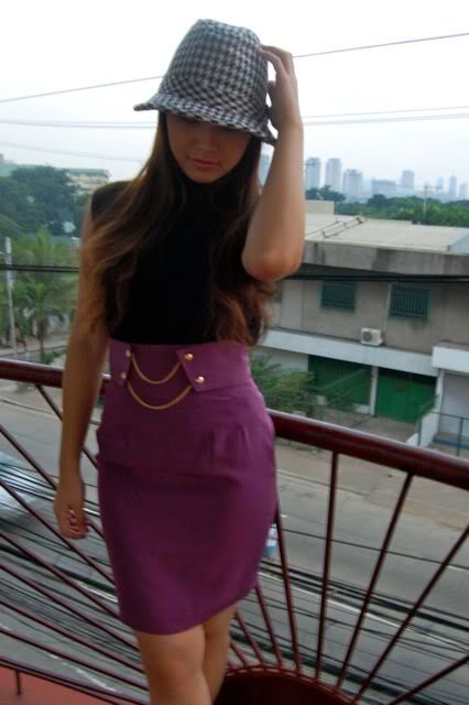 vintage purple pencil skirt with the prettiest gold chains in front! love this.